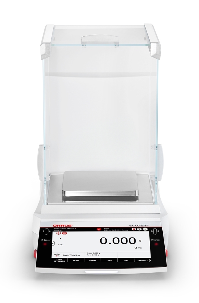 OBR-623P Ohaus Explorer® EXP Precision Plus Balance has the same characteristics as the EXR Precision model, with the added features of a motorized leveling system, a detachable terminal and base design, enhanced auto draft shield doors with anti-pinch safety protection, and three ambient sensors (load cell temperature, humidity, and air pressure).