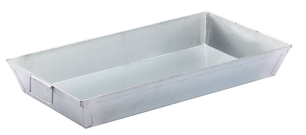 Galvanized Iron Pan, 10qt (9.5L), used for mixing and drying laboratory samples of soils and aggregates.