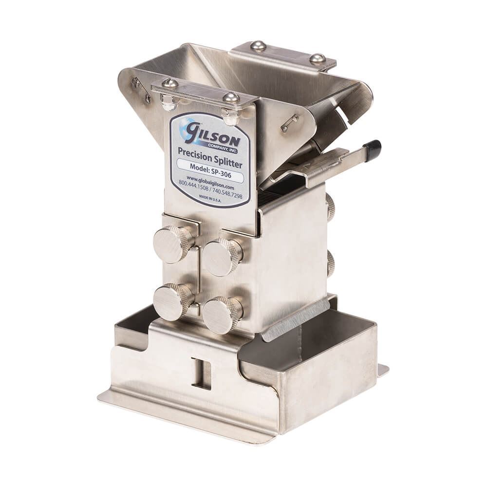 SP-306 Precision Splitter has thirty chutes with 0.06in (1.6mm) chute width opening, and the chute angle is 60°. Hopper capacity of 8.8in³ (0.14L). The maximum recommended particle size is 0.02in (0.6mm).