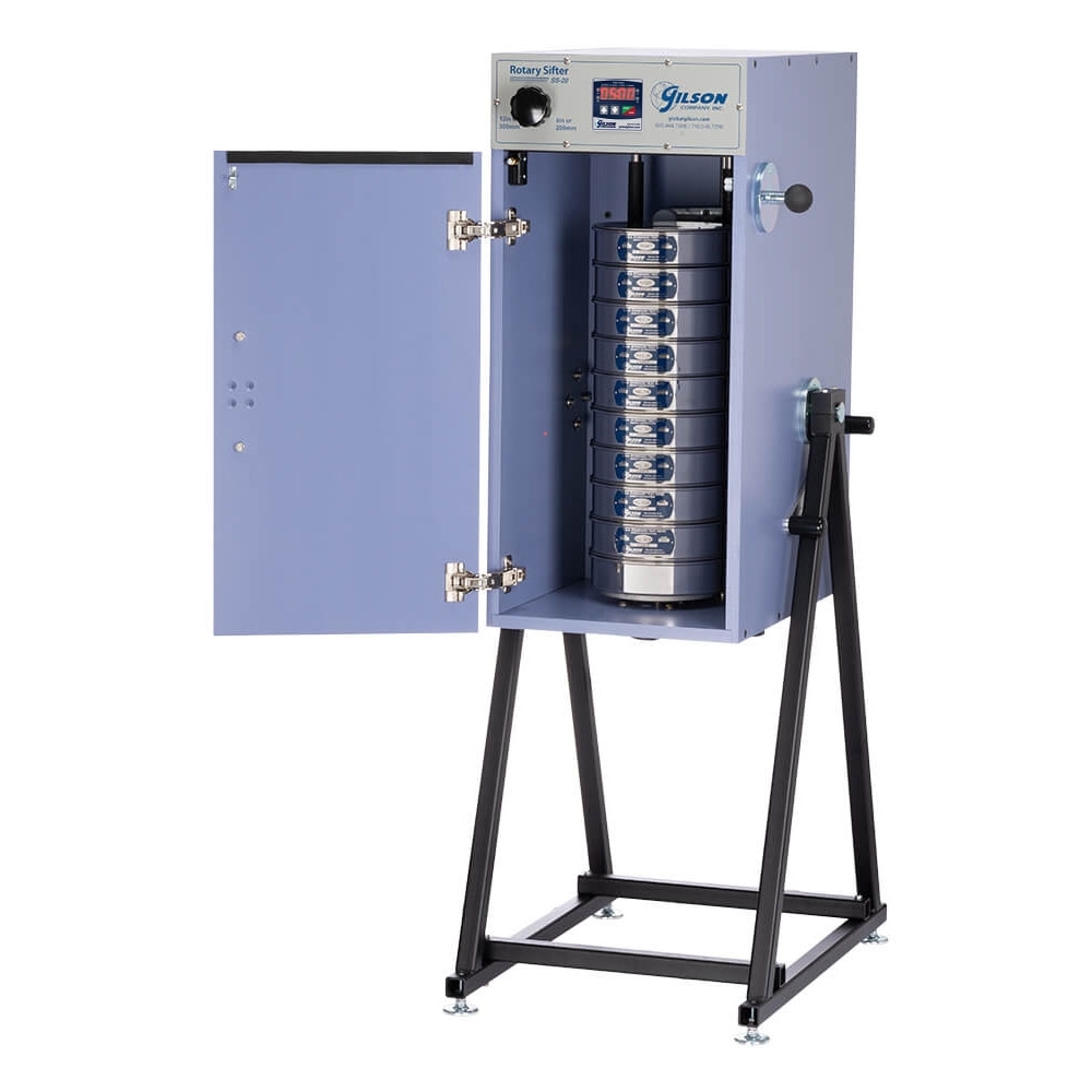 The SS-20 performs accurate particle size testing on construction aggregates and other granular materials in the 1in–No.635 (25mm–20µm) size range. Adjust between 8 to 12in and 200 to 300mm diameter test sieves by simply turning a spring-loaded knob and repositioning the turntable. Sieve stack capacity ranges from six 12in or 300mm diameter full-height sieves with a pan or up to twenty 8in or 200mm diameter half-height sieves with a pan.