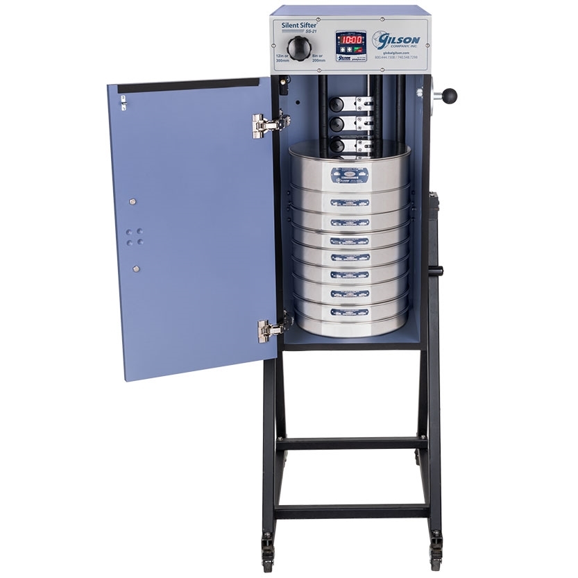 State departments of transportation often prefer the rotary sifter for aggregate gradations. The optimum size range of the Silent Sifter is from 1in–No.635 (25mm–20µm). Silent Sifters can instantly convert between 8 to 12in and 200 to 300mm test sieve diameter sizes. Sieve capacity ranges from six 12in diameter full-height sieves to twenty 8in diameter half-height sieves, including a pan.