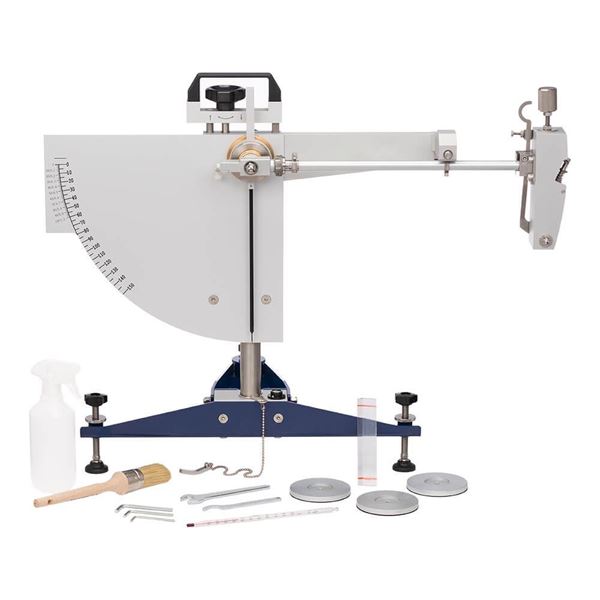 Pendulum Skid Tester measures skid resistance when a rubber slider on a 20in (508mm) pendulum arm contacts a test surface. A drag pointer on a 0–150 scale measures friction. The unit quantifies the potential of automotive tire skidding on road pavements and evaluates skid resistance of surfaces and polishing tendencies of aggregate samples prepared on an Accelerated Polishing Machine. Adjustments to the arm position and base maintain a true circular path when operated on sloping road surfaces. A supplementary 0–10 scale is included for work using Small Sliders.